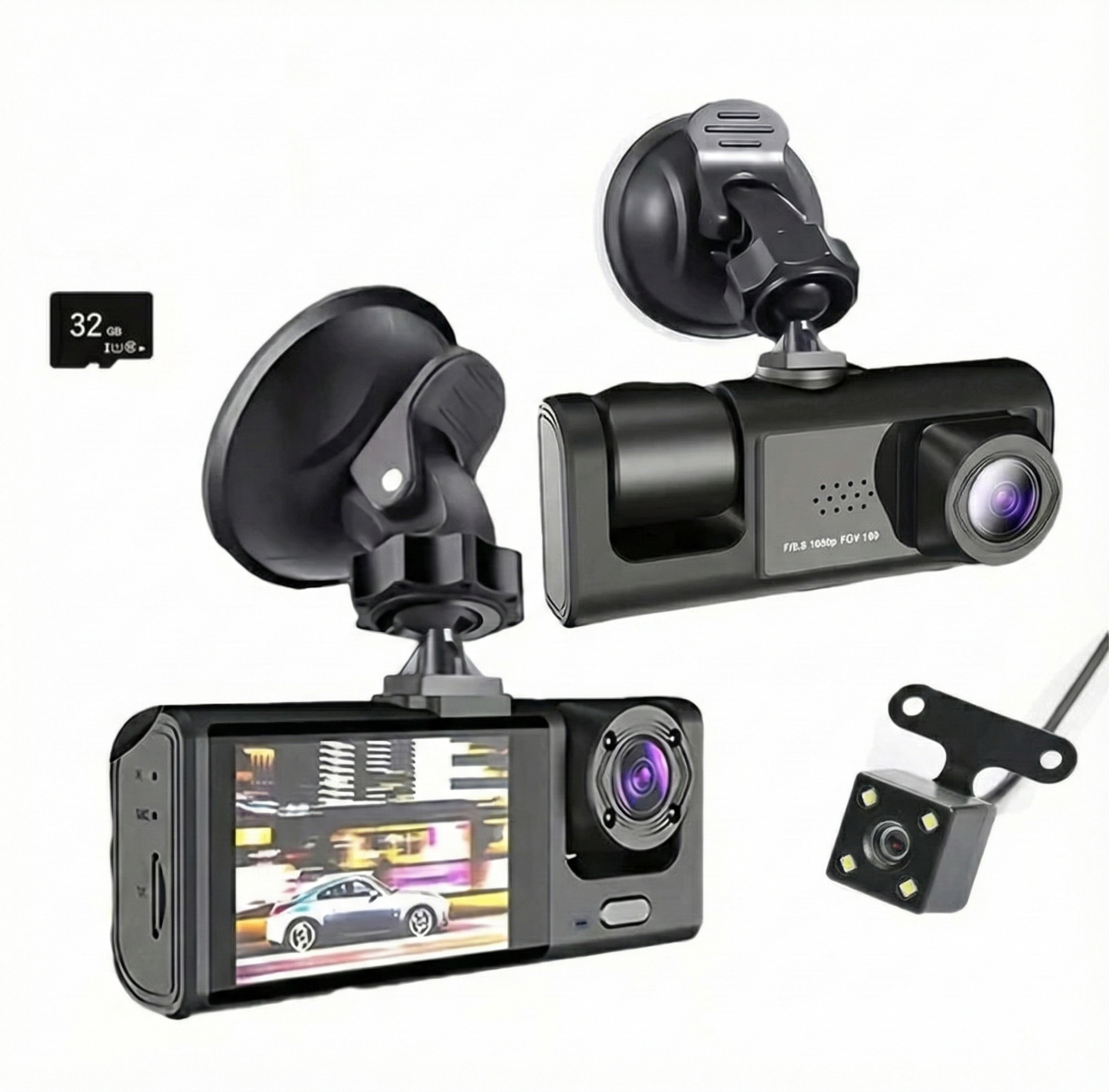 The product is equipped with 2 cameras in front of the car and inside the car (there are 2 lenses on one recorder product, excluding the rear camera) to comprehensively observe the front of the car, inside the car and road conditions.